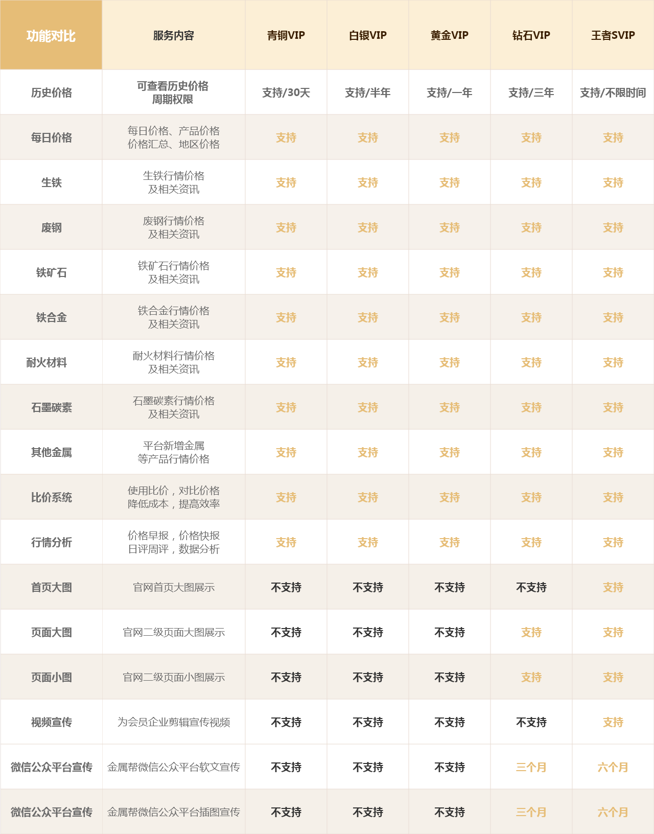 套餐功能对比